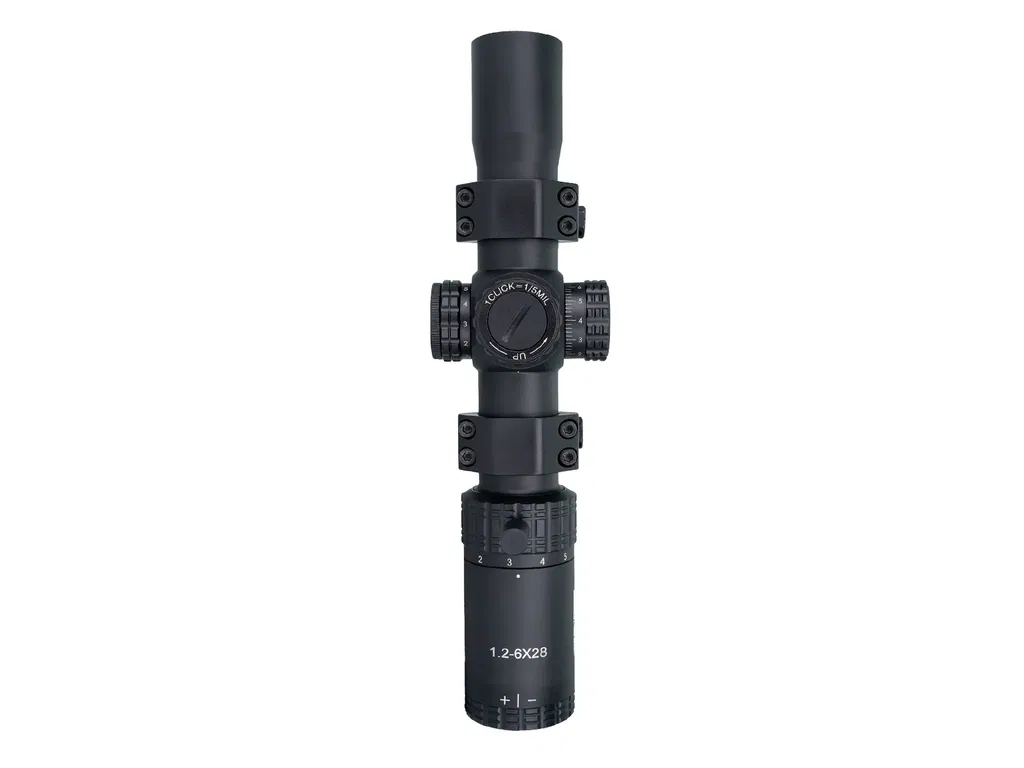 Njut av flexibel optik med 1,2 till 6× variabel förstoring och en 28 mm objektivlins som erbjuder ljusa, tydliga bilder och ett generöst synfält.