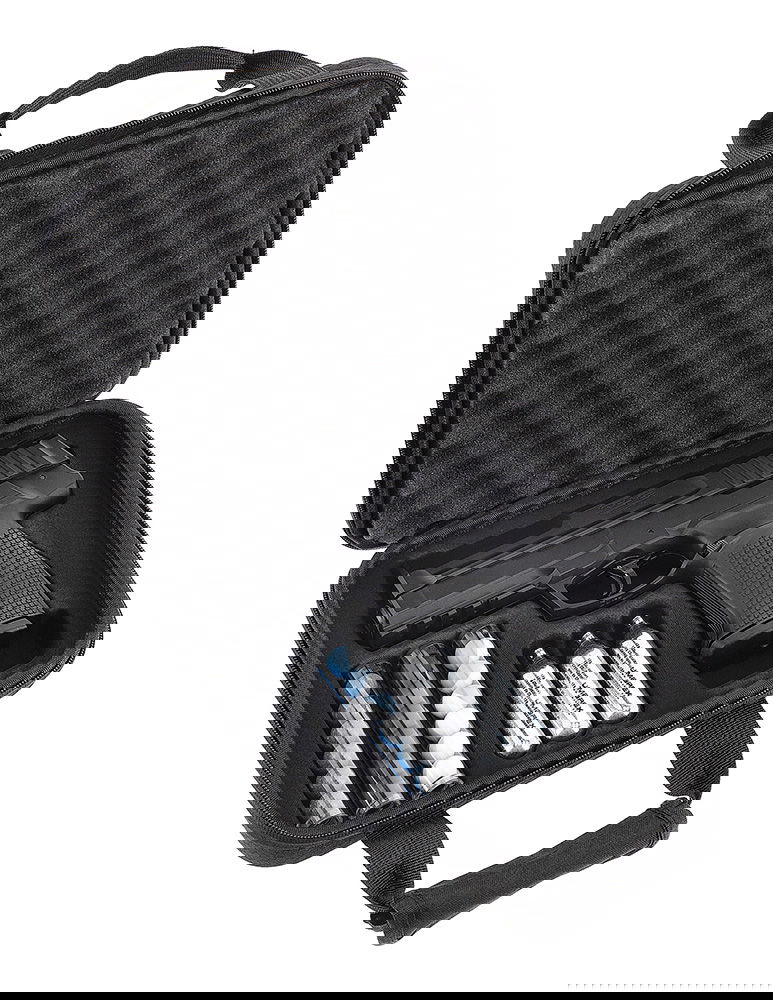 CO₂-patronen är inte placerad i greppet som vanligt, utan under pipan. Denna konfiguration gör det möjligt att förse det slimmade greppet med utmärkta ergonomiska egenskaper. På baksidan av magasinet finns det integrerade verktyget med vilket patronskruven enkelt kan lossas och dras åt.