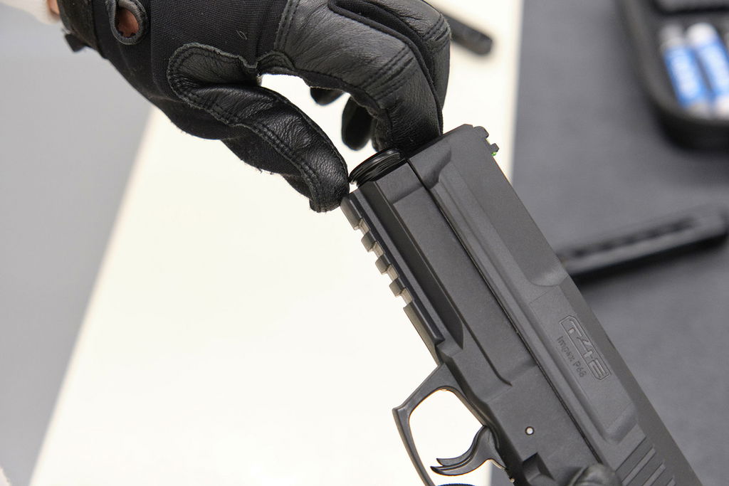 Magasinspärren kan manövreras från båda sidor så att vänsterhänta inte lämnas utanför. Det skräddarsydda polymerhölstret som finns som tillbehör, finns också i två versioner (vänsterhänt och högerhänt).