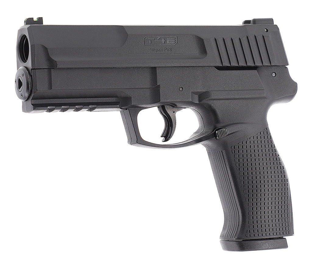 Impax P68 har också vår beprövade avtryckarbladsäkring. Magasinet rymmer 6 skott, och ett utökat magasin med 9 skotts kapacitet finns som tillval. Pistolen är utrustad med fiberoptiskt sikte.