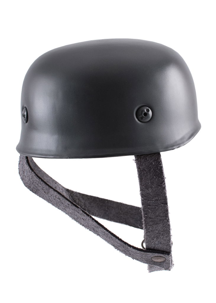 Denna dekorativa miniatyrhjälm av tyska fallskärmsjägare (andra världskriget) är tillverkad av stål. Fallskärmsjägarehjälmen har en hak- och nackrem i läder och en innerhjälm i läder med en aluminiumring. Ett cirka 13 cm högt träställ ingår (miniatyrhjälmen är inte fäst vid stället).