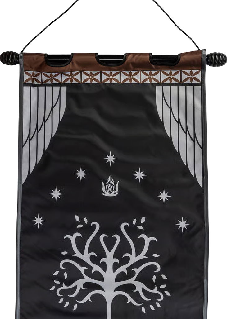 Tillverkad av slitstark nylon imponerar denna väggbaner med sin höga kvalitet och invecklade design. Det ikoniska vita trädet från Gondor står i centrum, inramat av sju stjärnor som representerar Palantíri och Elendils skepp. Designen kröns av kungens krona, symbolen för rättmätigt styre.