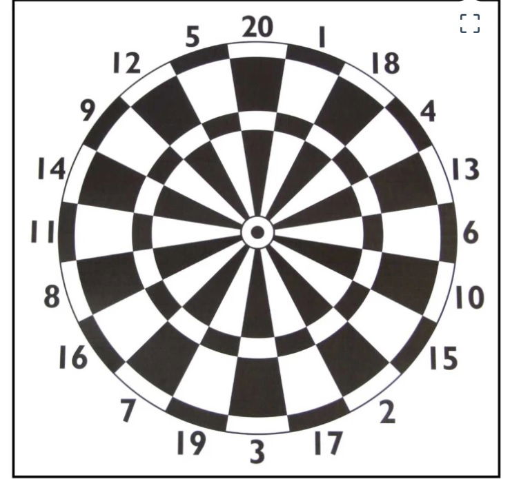 Med denna pappers-måltavla kan du tävla om att bli den första att minska poängen från 501 till 0 poäng. Trevligt att alternera med pappers-måltavlan FITA.