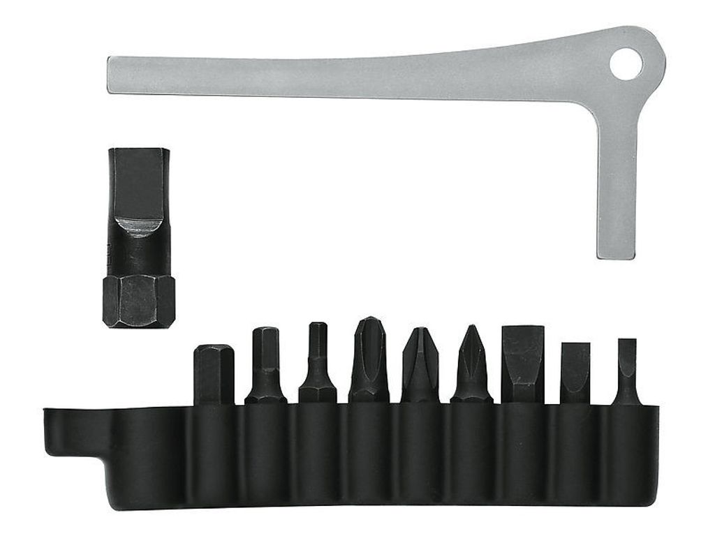 Medföljer gör verktygssats med nio delar och Molle-kompatibelt ballistiskt nylonfodral. Tillverkad i 440A rostfritt stål.