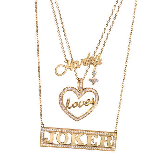 - Detta set innehåller 3 individuella halsband: Harley, Loves och Joker.