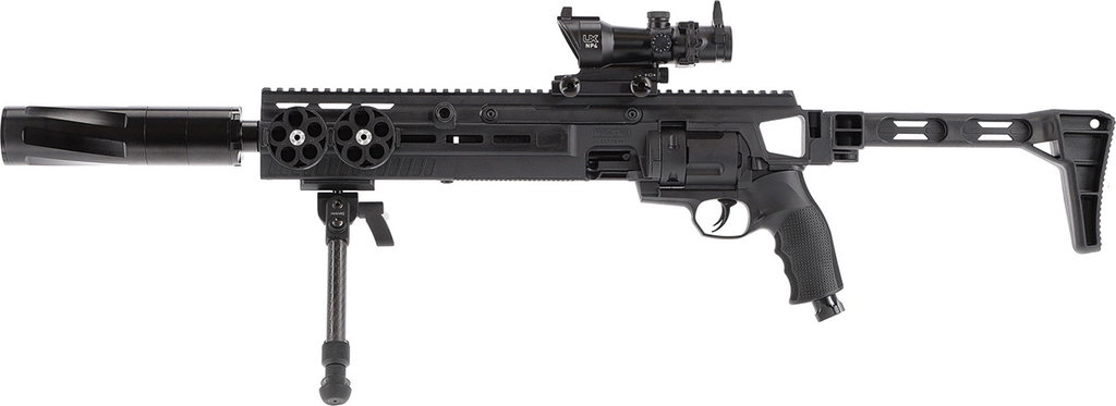 Detta imponerande axelstöd förbättrar mångsidigheten hos T4E TR 68-modellerna genom att ge den insatta revolvern den överlägsna ergonomin och tillbehörskompatibiliteten hos kompakta gevärsystem.